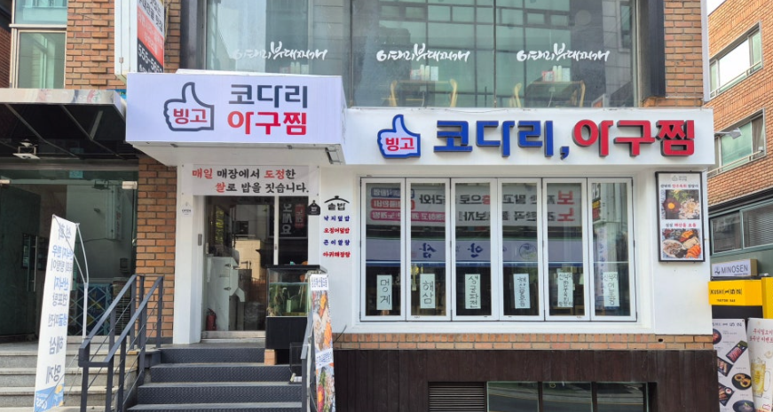 삼성중앙역 도보 2분 거리에 위치한 빙고 코다리 아구찜입니다.